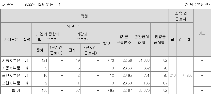 | 자동차부문 | 남 | 470 | 22.58 | 82 |
