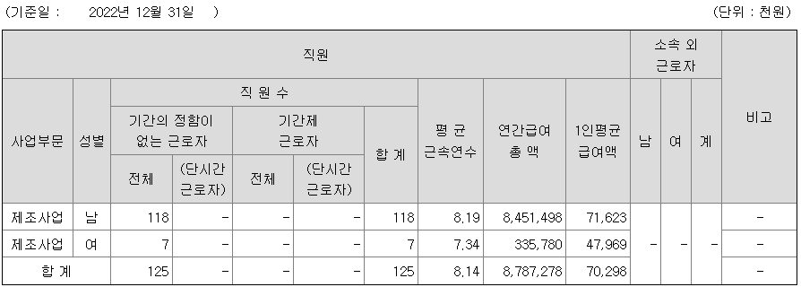 | 사업부문 | 성별 | 직원수 | 평균근속연수 | 평균연봉(백만) |