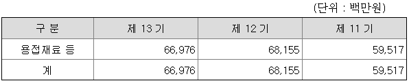 당사는 2010년 1월 1일을 기준으로 인적분할하였으며, 제조사업부문 중 피복용접재료부문을 승계하여 사업을 영위하고 있습니다. 당사의 2022년 매출은 669억으로 전년 매출 681억에 비해 1.7% 감소하였고, 영업이익은 94억으로 전년 141억 대비 33.3% 감소하였습니다.