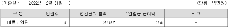 미등기임원의 평균연봉은 3억 5600만원이고 직원수는 81명입니다.