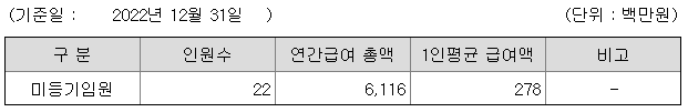 미등기임원의 평균연봉은 2억 7800만원이고 직원수는 22명입니다.