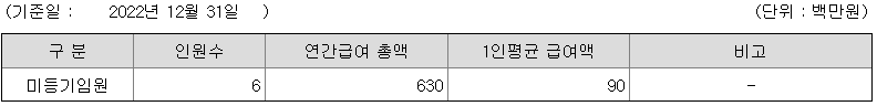 미등기임원의 평균연봉은 9000만원이고 직원수는 6명입니다.