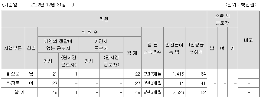 | 한국화장품제조 연봉 2022년 기준 공시자료 (0) | 2023.06.21 |