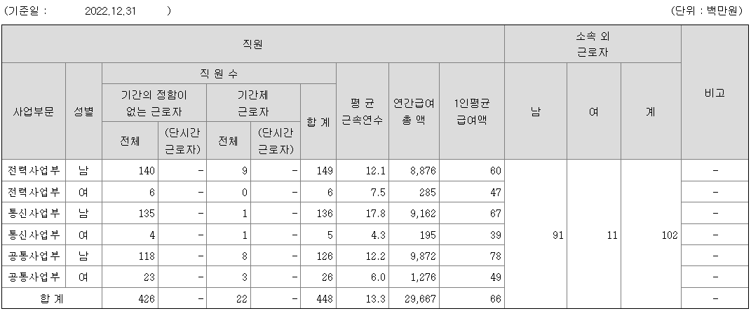 | 전력사업부 | 남 | 149 | 12.1 | 60 |