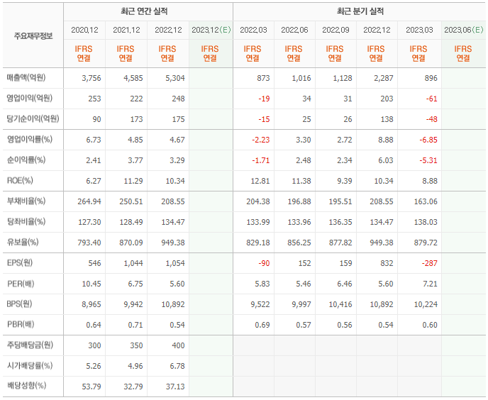 2022년 매출은 5304억, 영업이익은 248억, 당기순이익은 175억입니다. 그리고 영업이익률은 4.67%입니다.