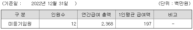 미등기임원의 평균연봉은 1억 9700만원이고 직원수는 12명입니다.
