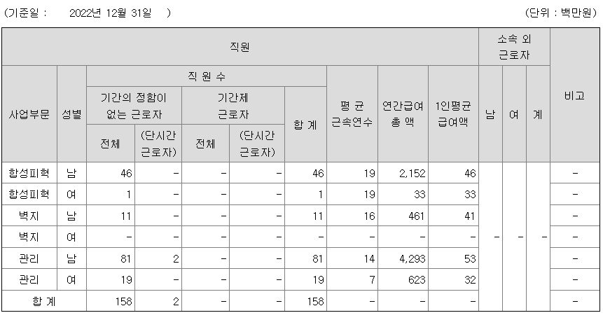 | 사업부문 | 성별 | 직원수 | 평균근속연수 | 평균연봉(백만) |