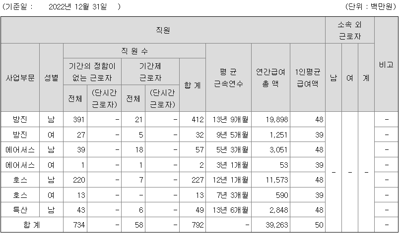 전체 평균연봉은 5000만원이고 직원수는 792명입니다.