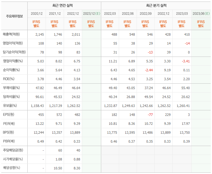 2022년 매출은 2011억, 영업이익은 136억, 당기순이익은 83억입니다. 그리고 영업이익률은 6.75%입니다.