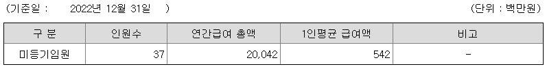 미등기임원의 평균연봉은 5억 4200만원이고 직원수는 37명입니다.