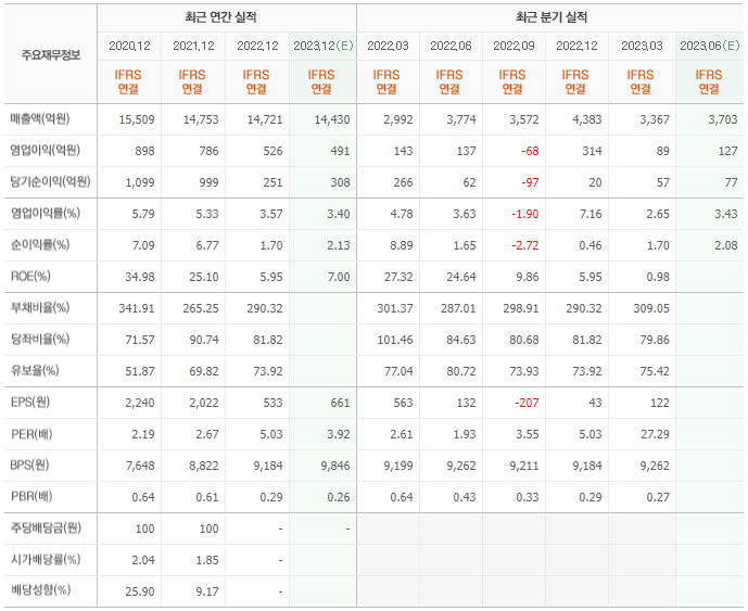 2022년 매출은 1조 4721억, 영업이익은 526억, 당기순이익은 251억입니다. 그리고 영업이익률은 3.57%입니다.