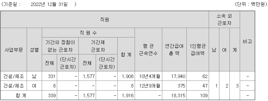 삼호개발 연봉 2022년 기준 공시자료