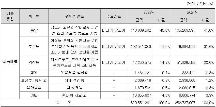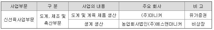 당사와 그 종속회사는 계육제품의 생산 및 판매 사업을 주요 사업으로 하고 있는 수직 계열화 업체입니다.
