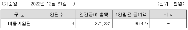 미등기임원의 평균연봉은 9000만원이고 직원수는 3명입니다.