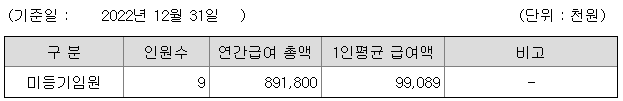 미등기임원의 평균연봉은 9900만원이고 직원수는 9명입니다.