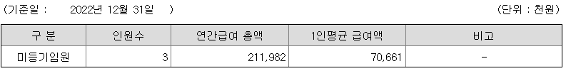 미등기임원의 평균연봉은 7000만원이고 직원수는 3명입니다.