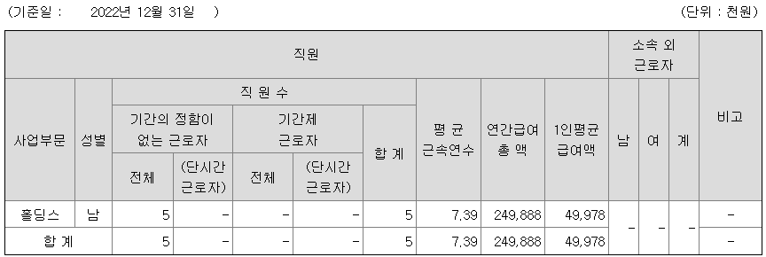 SJM홀딩스 연봉 2022년 기준 공시자료