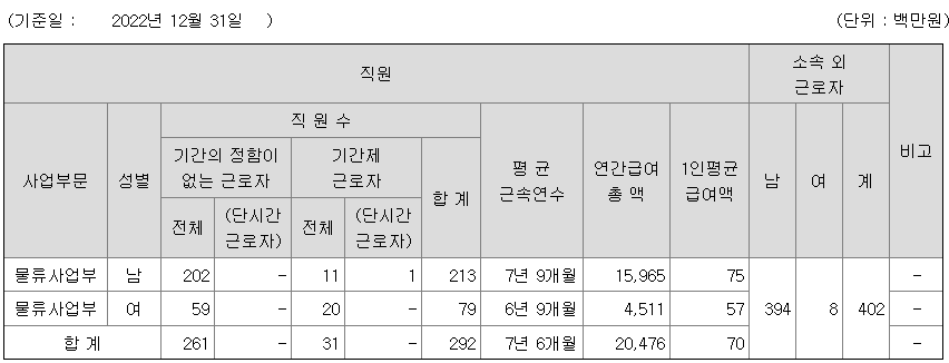 | 물류사업부 | 남 | 213 | 7년 9개월 | 75 |