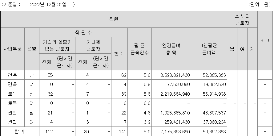 | 사업부문 | 성별 | 직원수 | 평균근속연수 | 평균연봉(백만) |