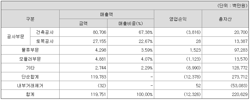 *상기 재무현황은 연결실체간 내부거래 제거 후의 가액임.
