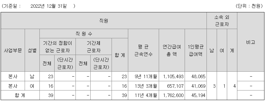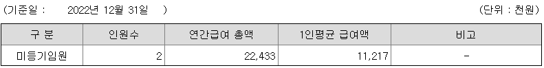 미등기임원의 평균연봉은 1100만원이고 직원수는 2명입니다.
