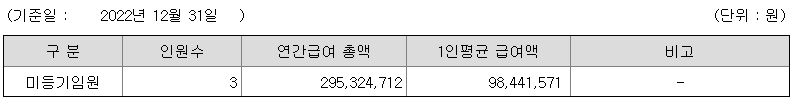 미등기임원의 평균연봉은 9800만원이고 직원수는 3명입니다.