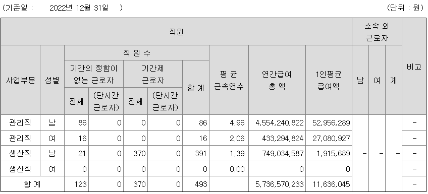 전체 평균연봉은 1100만원이고 직원수는 493명입니다.