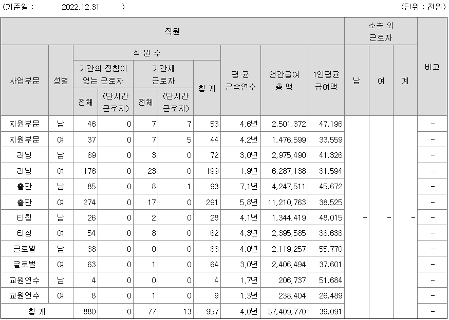 전체 평균연봉은 3900만원이고 직원수는 957명입니다.