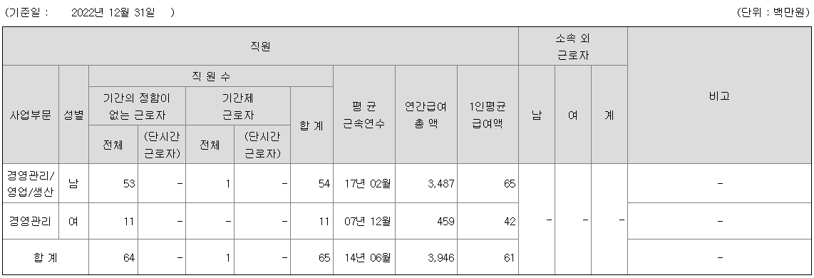 미등기임원의 평균연봉은 1억 600만원이고 직원수는 4명입니다.