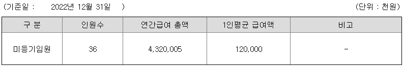 미등기임원의 평균연봉은 1억 2000만원이고 직원수는 36명입니다.
