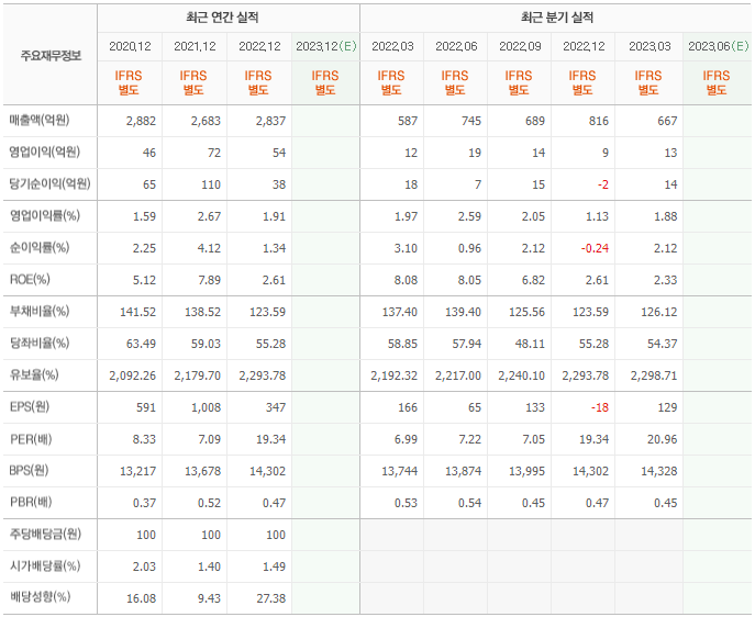 2022년 매출은 2837억, 영업이익은 54억, 당기순이익은 38억입니다. 그리고 영업이익률은 1.91%입니다.