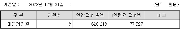 미등기임원의 평균연봉은 7700만원이고 직원수는 8명입니다.