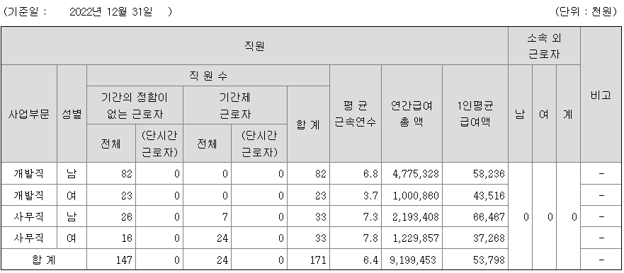 전체 평균연봉은 5300만원이고 직원수는 171명입니다.