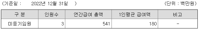 미등기임원의 평균연봉은 1억 8000만원이고 직원수는 3명입니다.
