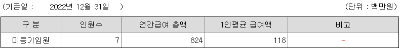 미등기임원의 평균연봉은 1억 1800만원이고 직원수는 7명입니다.