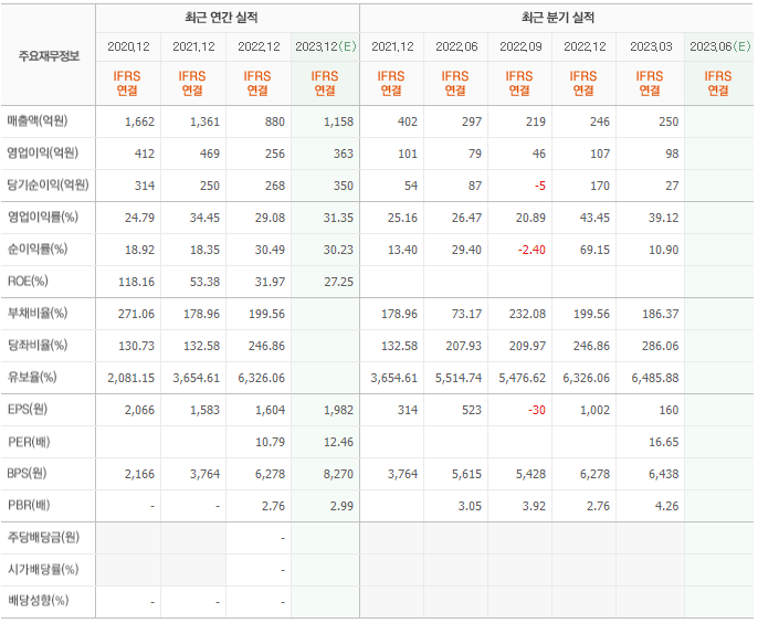 2022년 매출은 880억, 영업이익은 256억, 당기순이익은 268억입니다. 그리고 영업이익률은 29.08%입니다.