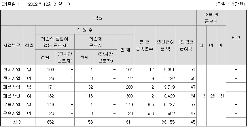 | 패션사업 | 남 | 203 | 2 | 47 |