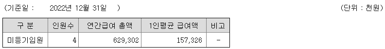 미등기임원의 평균연봉은 1억 5700만원이고 직원수는 4명입니다.