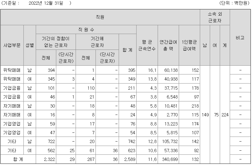 전체 평균연봉은 1억 3200만원이고 직원수는 2589명입니다.