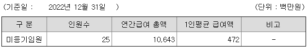 미등기임원의 평균연봉은 4억 7200만원이고 직원수는 25명입니다.