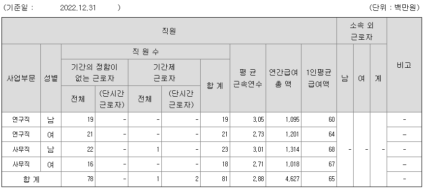전체 평균연봉은 6500만원이고 직원수는 81명입니다.