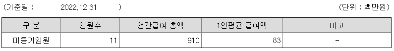 미등기임원의 평균연봉은 8300만원이고 직원수는 11명입니다.