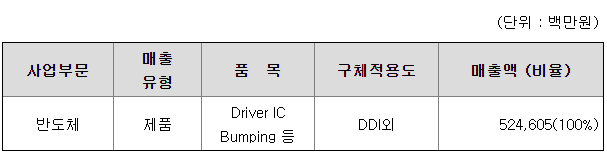 ※ 당사는 반도체 후공정관련 Bump, Test, Back-End 등 단일사업부문으로 구성되어 있습니다.