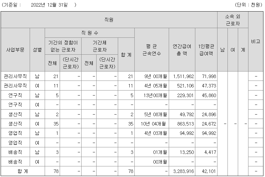 | 관리사무직 | 남 | 21 | 9년 00개월 | 71 |