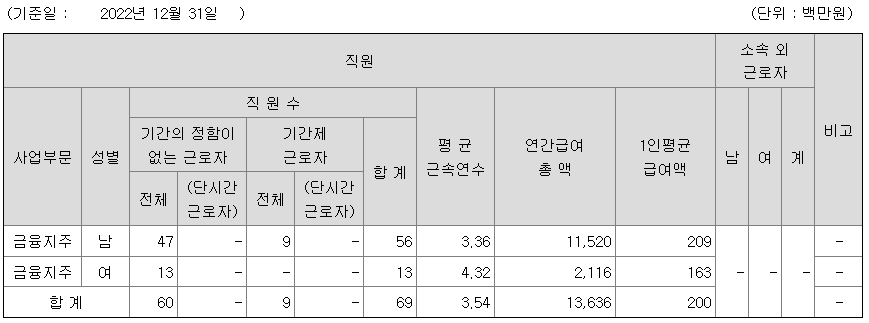 | 금융지주 | 남 | 56 | 3.36 | 209 |