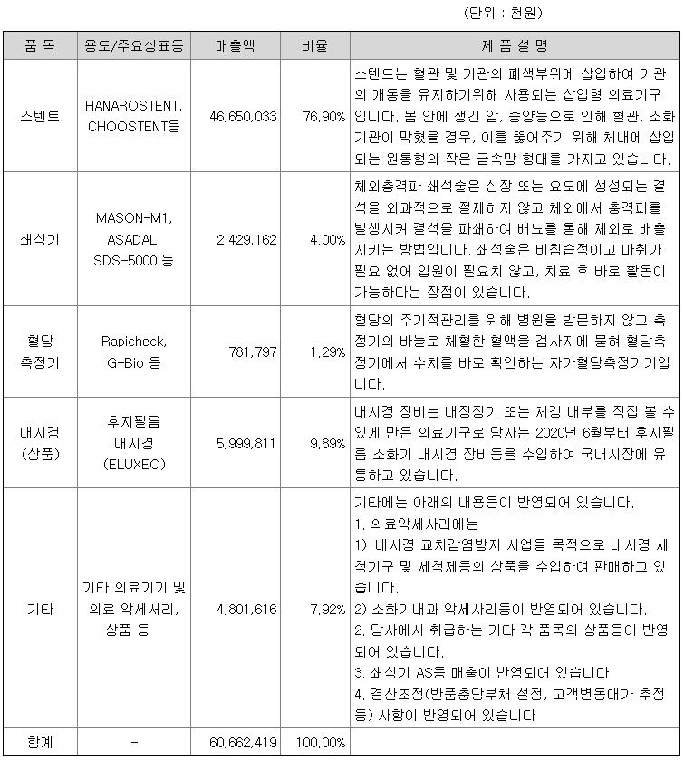당사는 주요 사업인 비혈관 스텐트와 시너지 효과가 있는 소화기 내과 포트폴리오를 구성하기 위해 2020년 6월 후지필름 소화기 내시경 장비를 국내에 수입/유통판매를 시작하였습니다. 이를 통해 국내 소화기 내시경 시장에서의 점유율을 지속적으로 확대하고 있습니다.