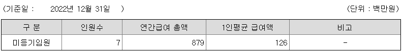 미등기임원의 평균연봉은 1억 2600만원이고 직원수는 7명입니다.