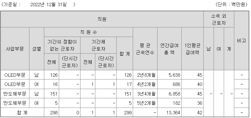 | OLED부문 | 남 | 126 | 2년8개월 | 45 |