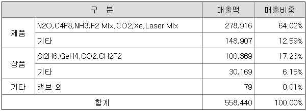 당사의 품목별 매출 비중은 다음과 같습니다. (별도기준) (단위:백만원)