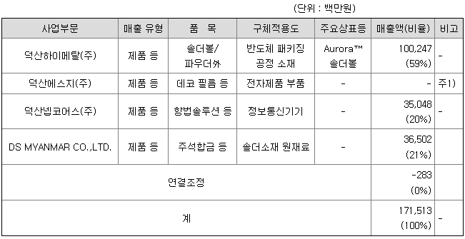 주1) 덕산에스지㈜는 지속적인 매출 부진으로 인하여 관련 영업에 대한 손익은 중단 영업으로 표시되었습니다.